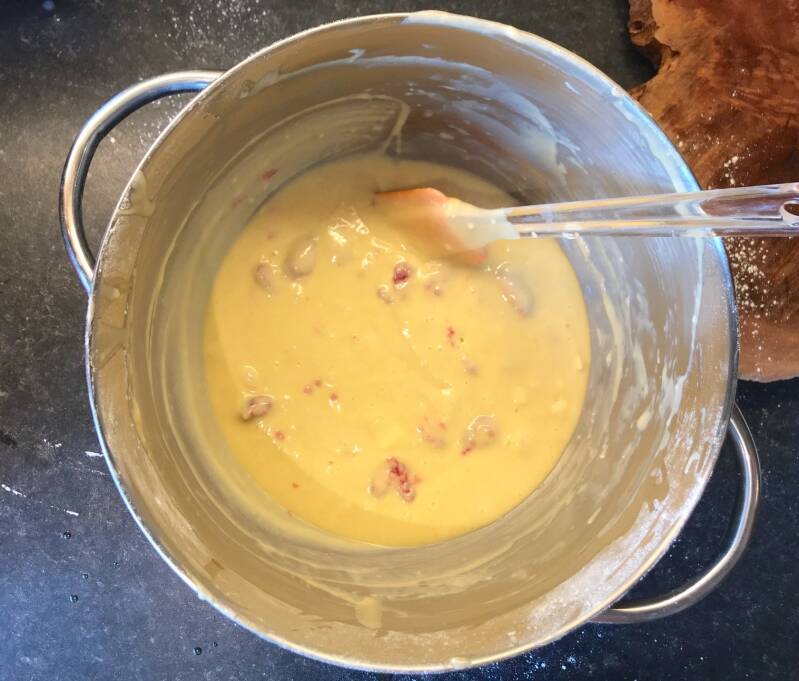 - Whilst still mixing at a low speed, slowly add the melted butter until combined.