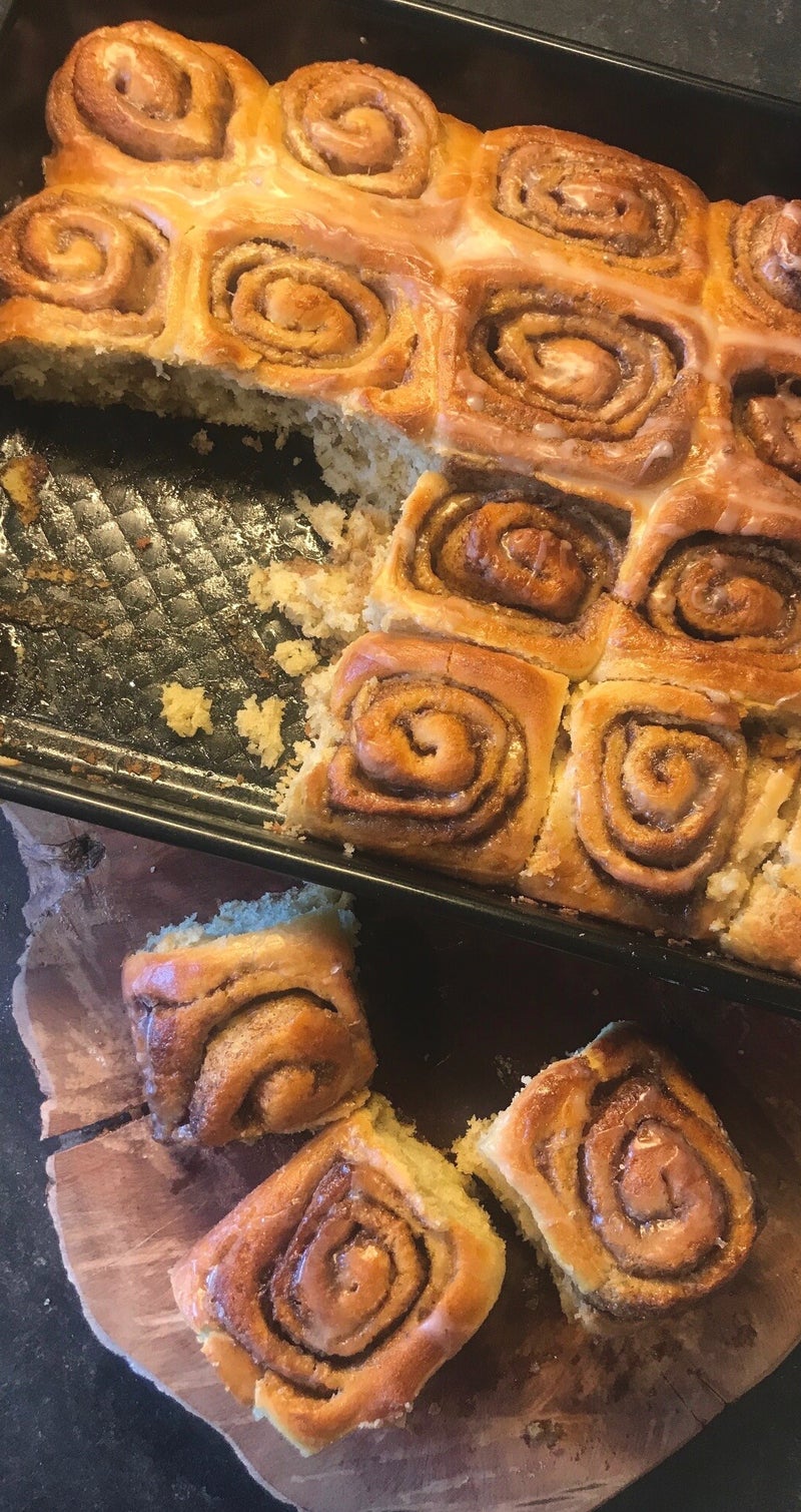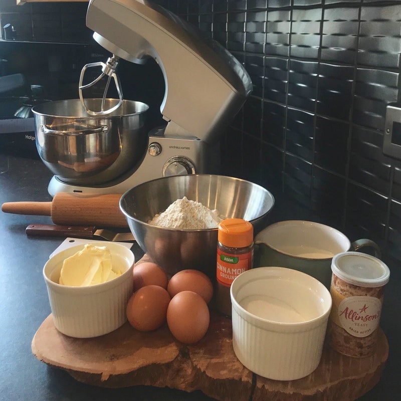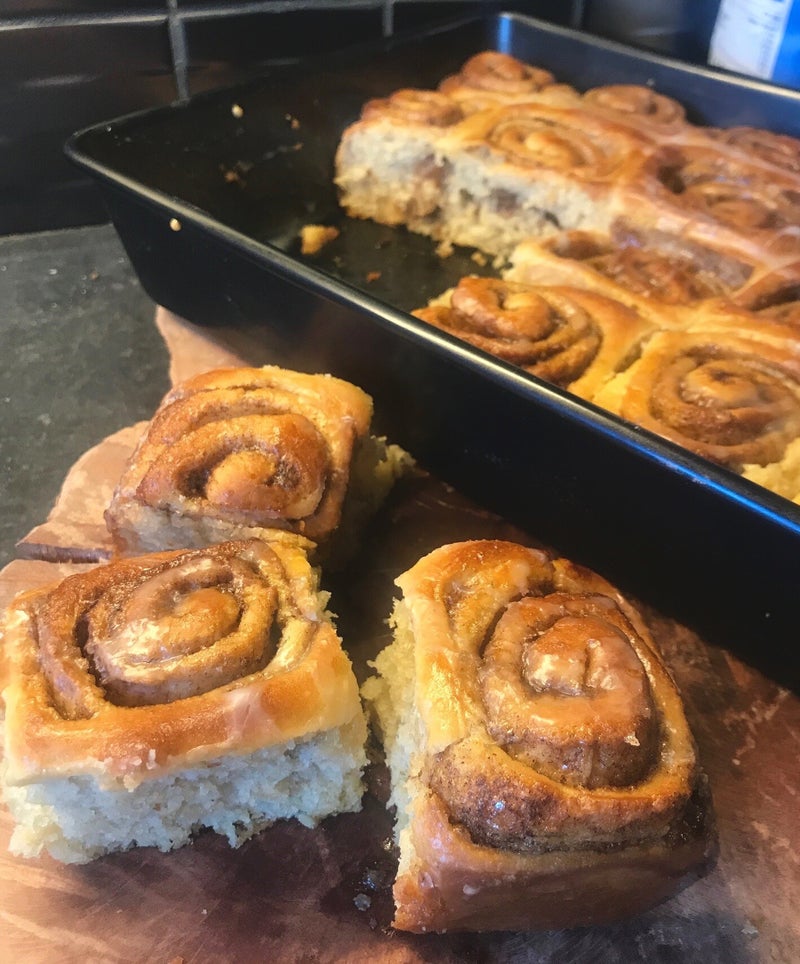 One idea I had - after the first prove, split the dough in two. With one piece, fold the dough in on itself, wrap with cling film and place in the freezer. When you've tried out this recipe for cinnamon buns, use the rest of the dough to try again, but change an element - try a different shape or alter the flavours! Hopefully this will give you a challenge. Let me know if you would like any tutorials for different shapes like plaits and knots - visit the contact page to find my socials and email!
